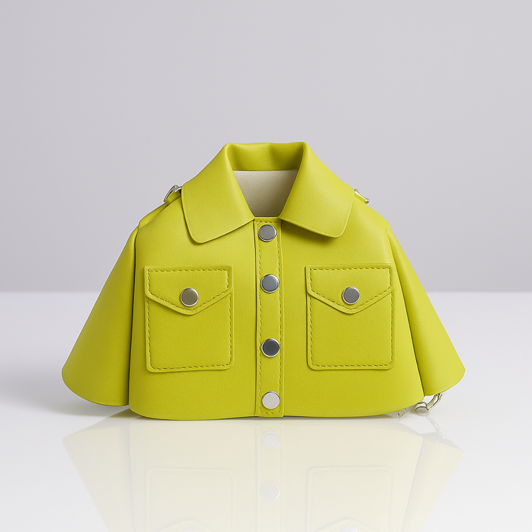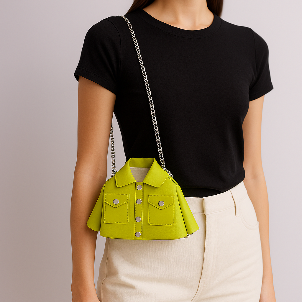 Inspired by runway-ready jackets, this sculpted mini bag is cut from smooth premium vegan leather and finished with polished snap detailing for a sharp, tailored look. Bold colour blocking turns even a simple tee and jeans into a styled outfit, while the chain crossbody strap keeps your essentials close and your hands free. Compact yet cleverly structured, it works as both your everyday mini and the conversation piece everyone asks about.